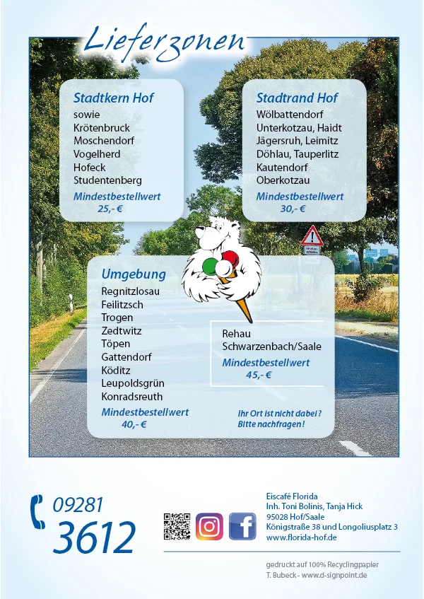 In gedruckter Form erhältlich in unseren Filialen, beim Lieferservice und unseren Eisbussen.